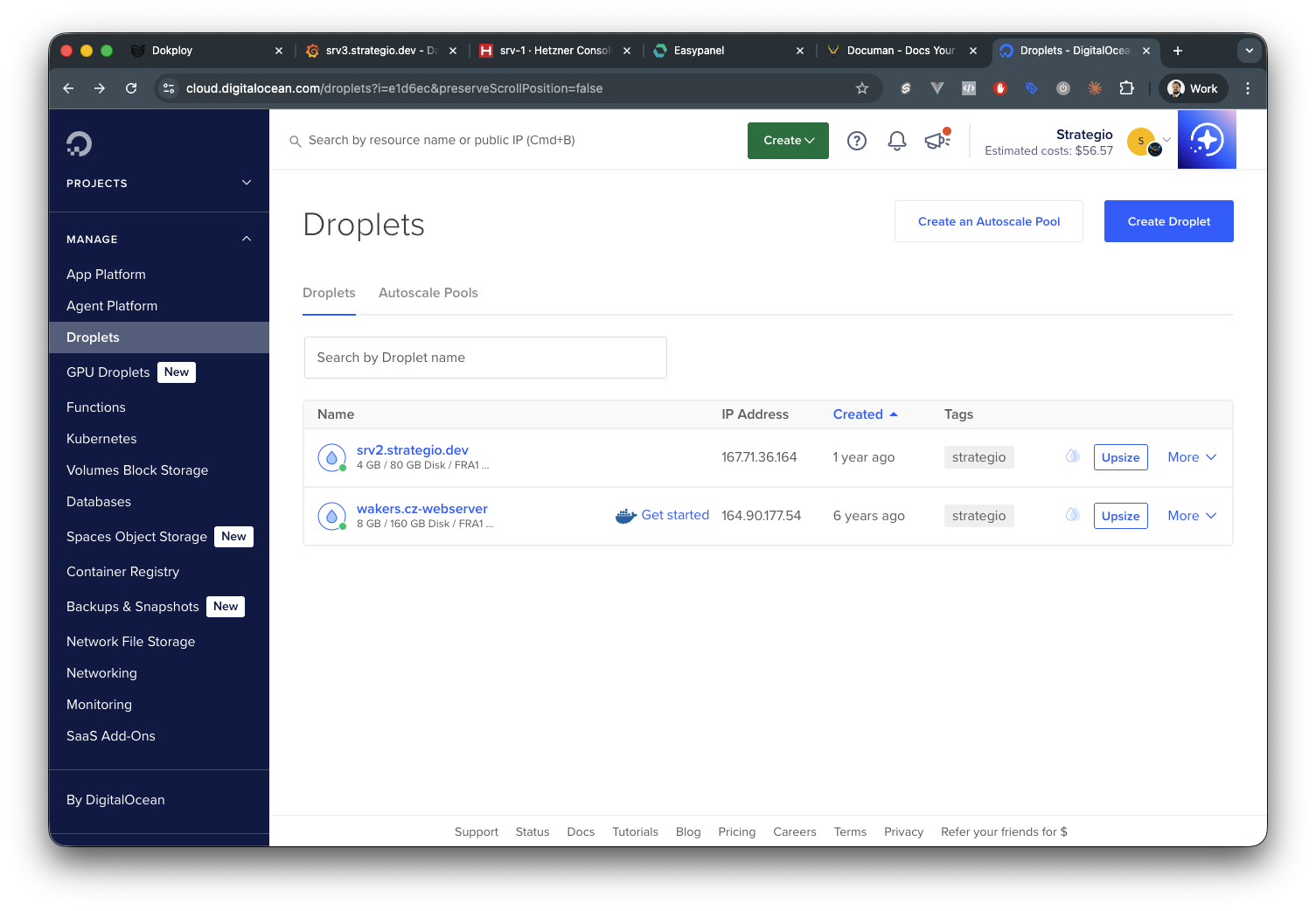 Původní infrastruktura běžela na DigitalOcean a skládala se ze dvou VPS (droplety):