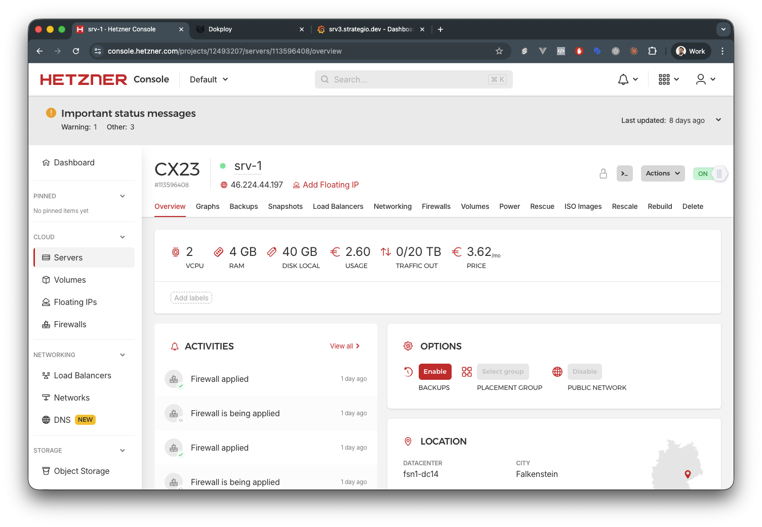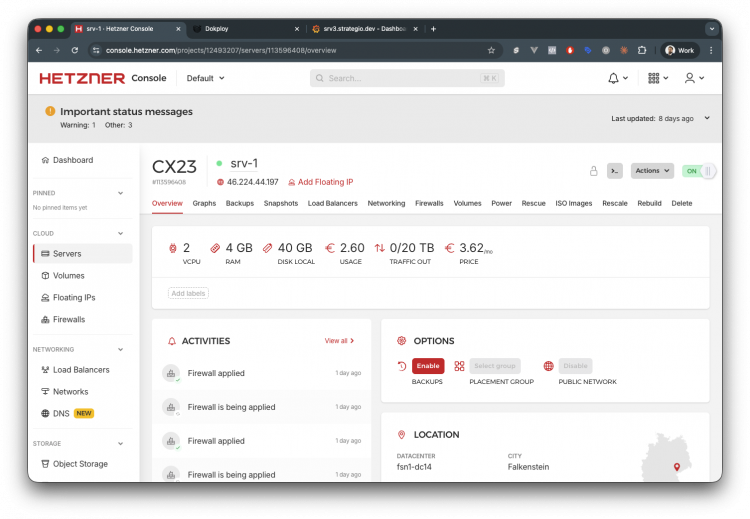Jako první krok byl nasazen samostatný VPS u Hetzner: